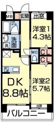 サウスガーデン清水東 八景水谷の2DK賃貸マンション