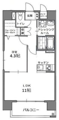| 築年月 | 2014年1月 | 間取り | 1LDK( LDK11畳/洋室4.3畳 ) | 専有面積 | 43.35m2 |