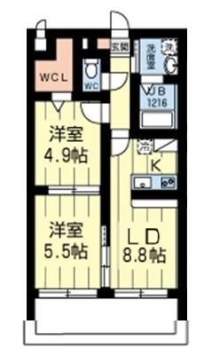 | 築年月 | 2017年8月 | 間取り | 2DK( DK8.8畳/洋室5.5畳/洋室4.9畳 ) | 専有面積 | 45.9m2 |
