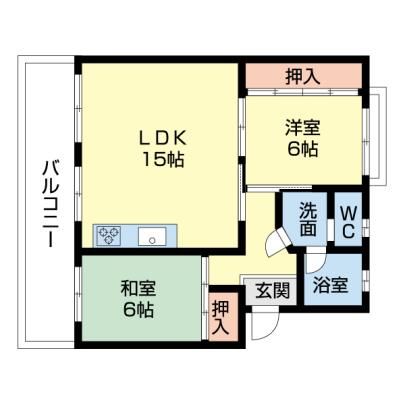 | 築年月 | 1983年4月 | 間取り | 2LDK( LDK15畳/洋室6畳/和室6畳 ) | 専有面積 | 62.6m2 |